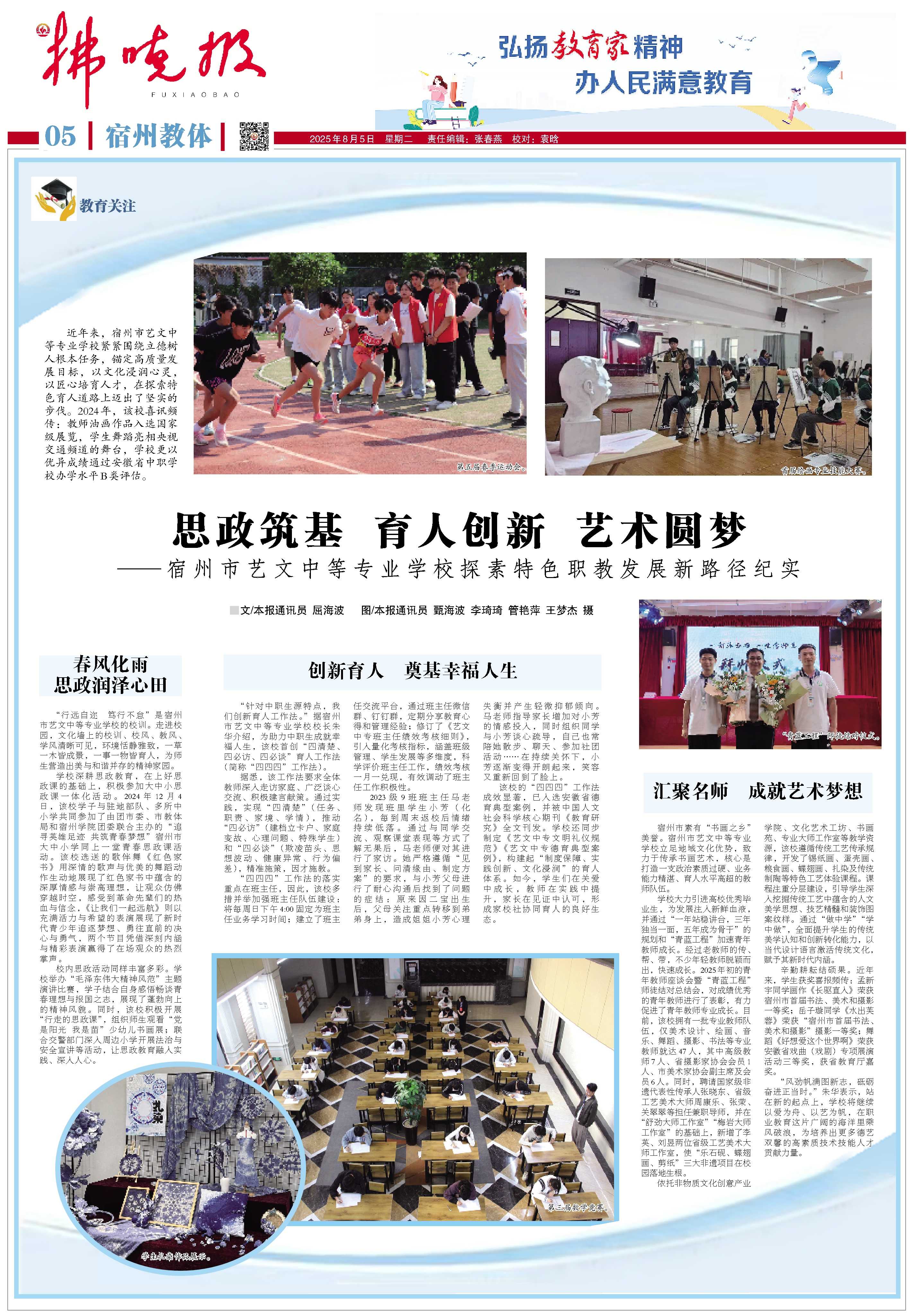 媒體聚焦 | 拂曉報:思政筑基 育人創(chuàng)新 藝術(shù)圓夢—宿州市藝文中等專業(yè)學校探索特色職教發(fā)展新路徑紀實